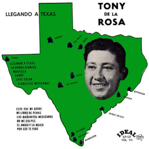 Llegando a Texas Tony De La Rosa Genre Conjunto Album Tracks Llegando a Texas La Bomba Atomica Marisela Sandy Cafe Colon Florecitas Mexicanas Este Fue Mi Adios Mi Libro De Penas Las Mananitas Mexicanas No Me Culpes El Amigo y La Mujer Por Eso Te Pido