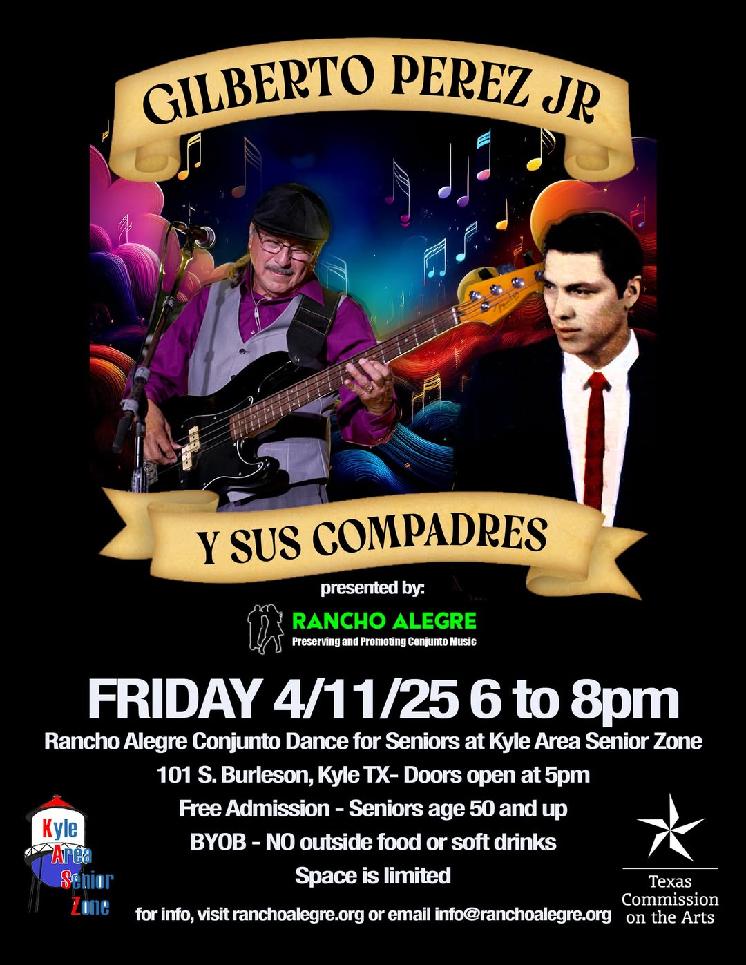 Gilberto Perez Jr will be wrapping up our Senior Dance series at Kyle Area Senior Zone this year on Friday 4/11/25 6 to 8pm. Free admission. Folks age 50 and up welcome. Doors open at 5pm. Space is limited.